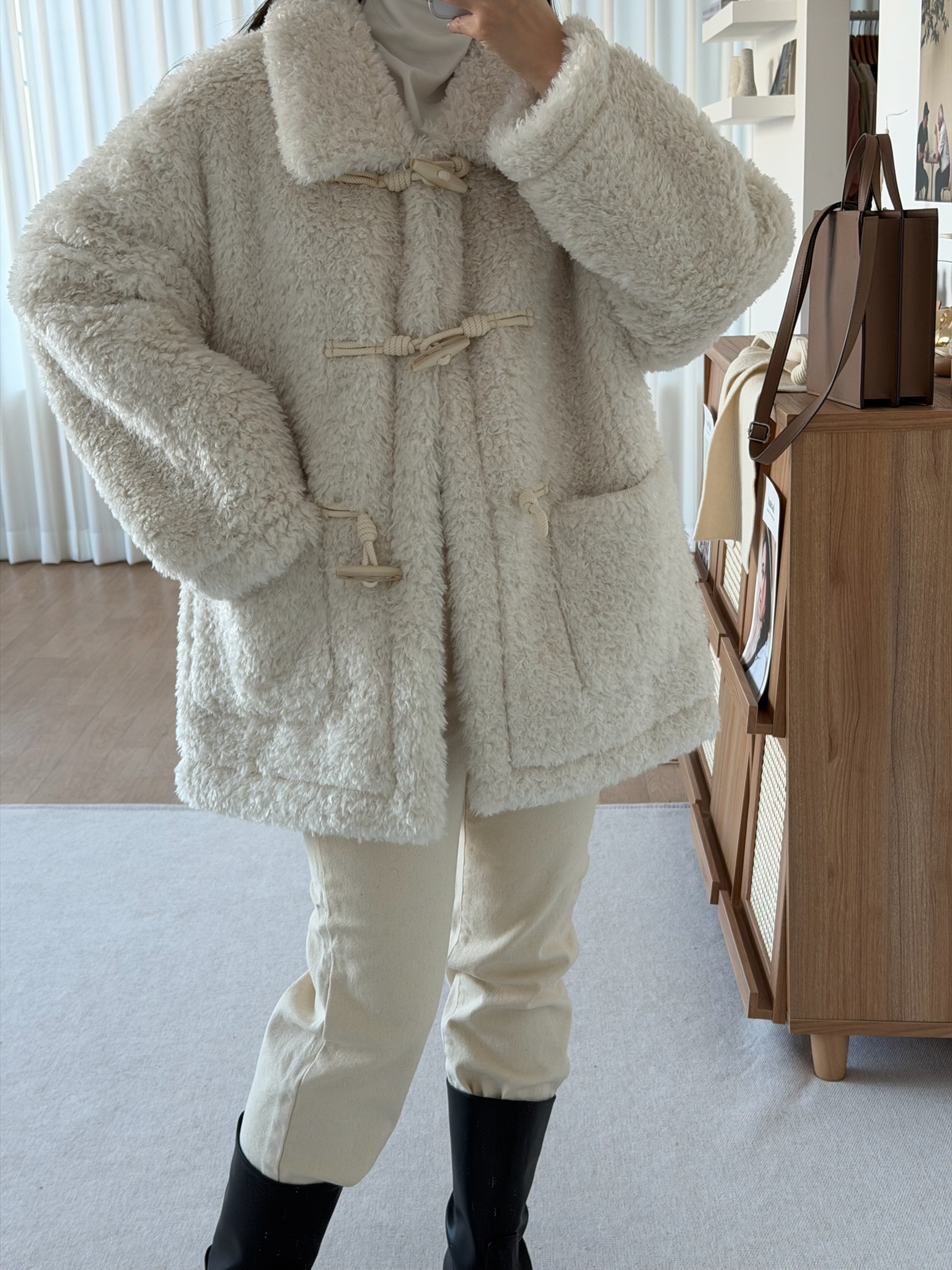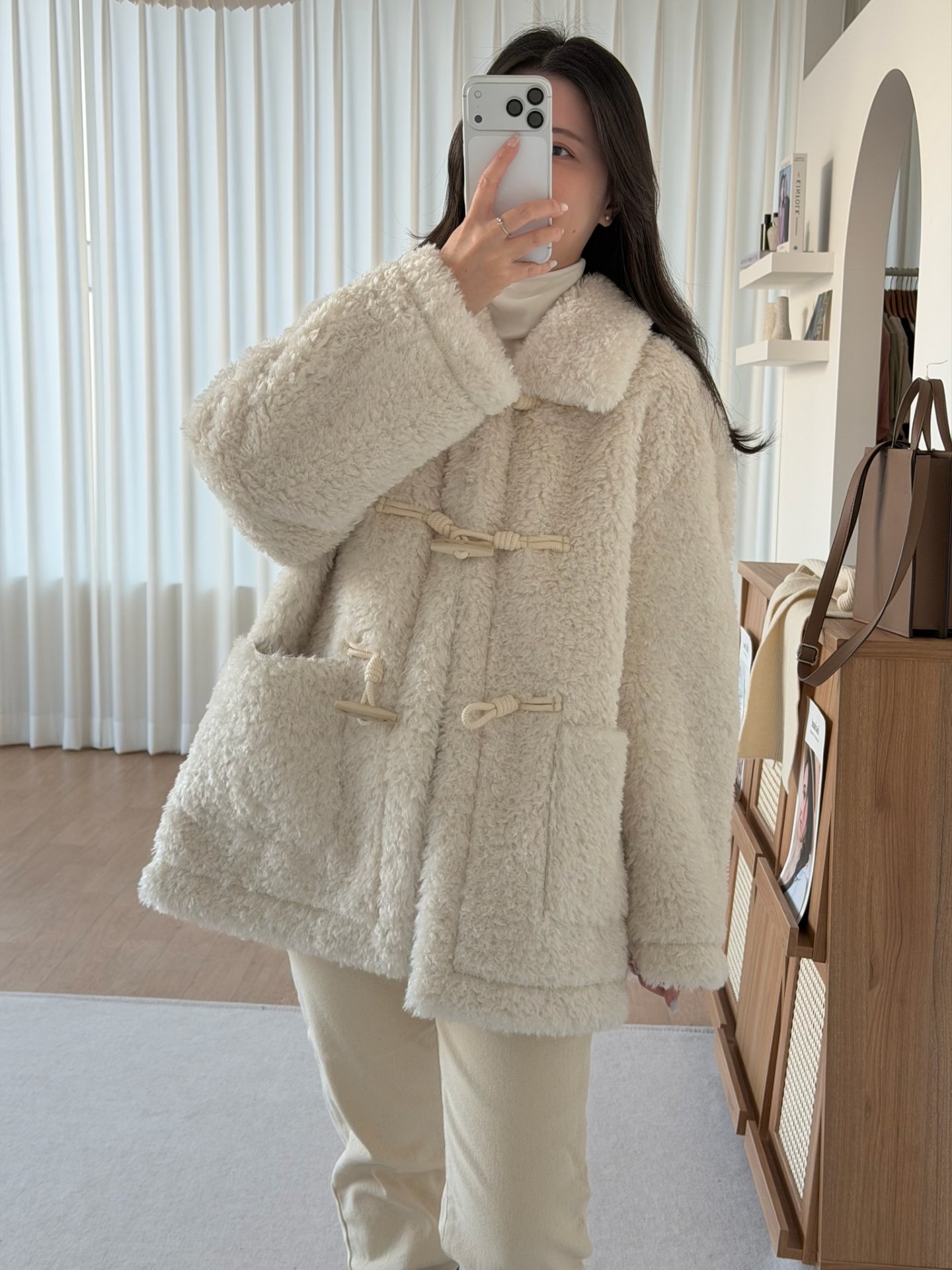 激軟羊角釦毛大衣