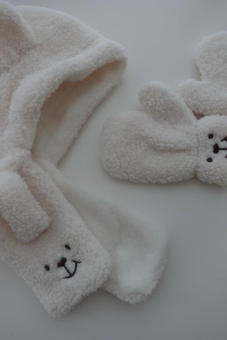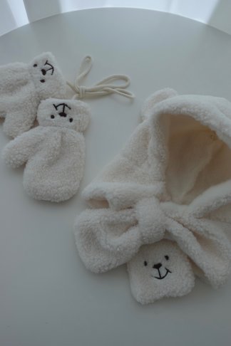 〔熱銷破200組〕小熊鋪毛圍巾帽組