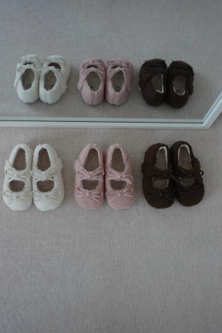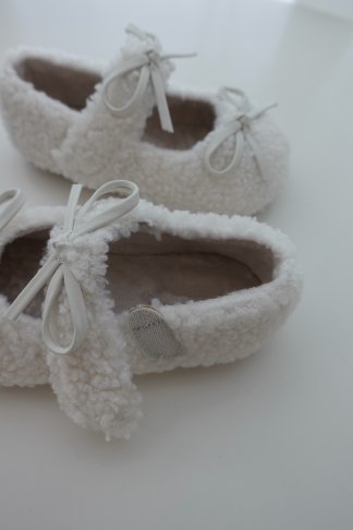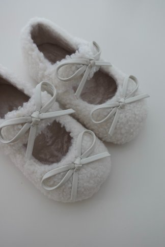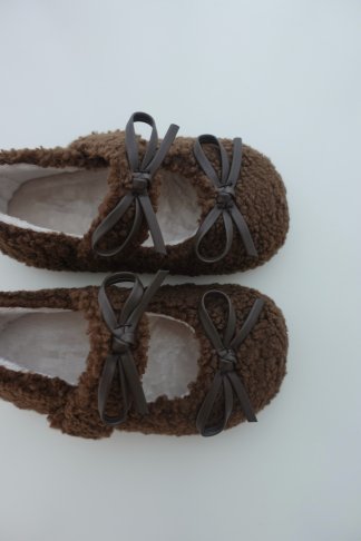 毛絨蝴蝶結平底鞋